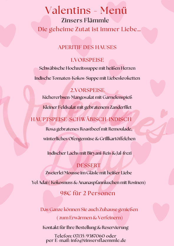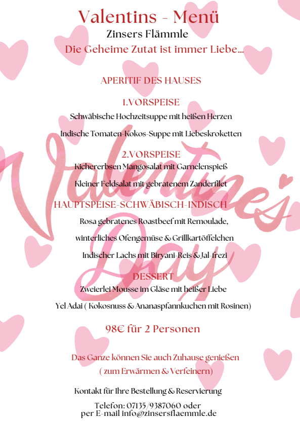 Reservierungen direkt hier oder persönlich per Telefon 07135/9387060.